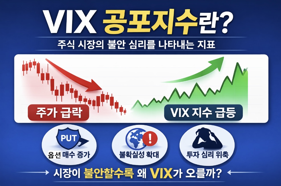 주식시장이 급락하는 날 뉴스를 보면 "공포지수가 급등했다"는 말을 자주 보게 됩니다. 여기서 말하는 공포지수는 미국 옵션시장에서 계산되는 VIX(변동성 지수)를 의미합니다. 저도 처음에는 이 말이 정확히 무슨 의미인지 잘 이해되지 않았습니다. 주가는 떨어지는데 어떤 지수는 올라간다니, 도대체 무슨 관계일까 싶었습니다. 몇 개월 전부터 주식 공부를 시작하면서 VIX라는 지표를 알게 되었고, 시장 불안 심리와 변동성을 보여주는 중요한 지표라는 것을 조금씩 이해하게 되었습니다.